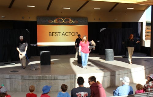 The Ambassador Animal Resources team is comprised of 12 staff who work cooperatively to brainstorm show themes, write an entertaining script, train engaging animal behaviors, build awards-themed props and sets, film and edit accompanying video, and then merge all of it together to deliver a seamless production.