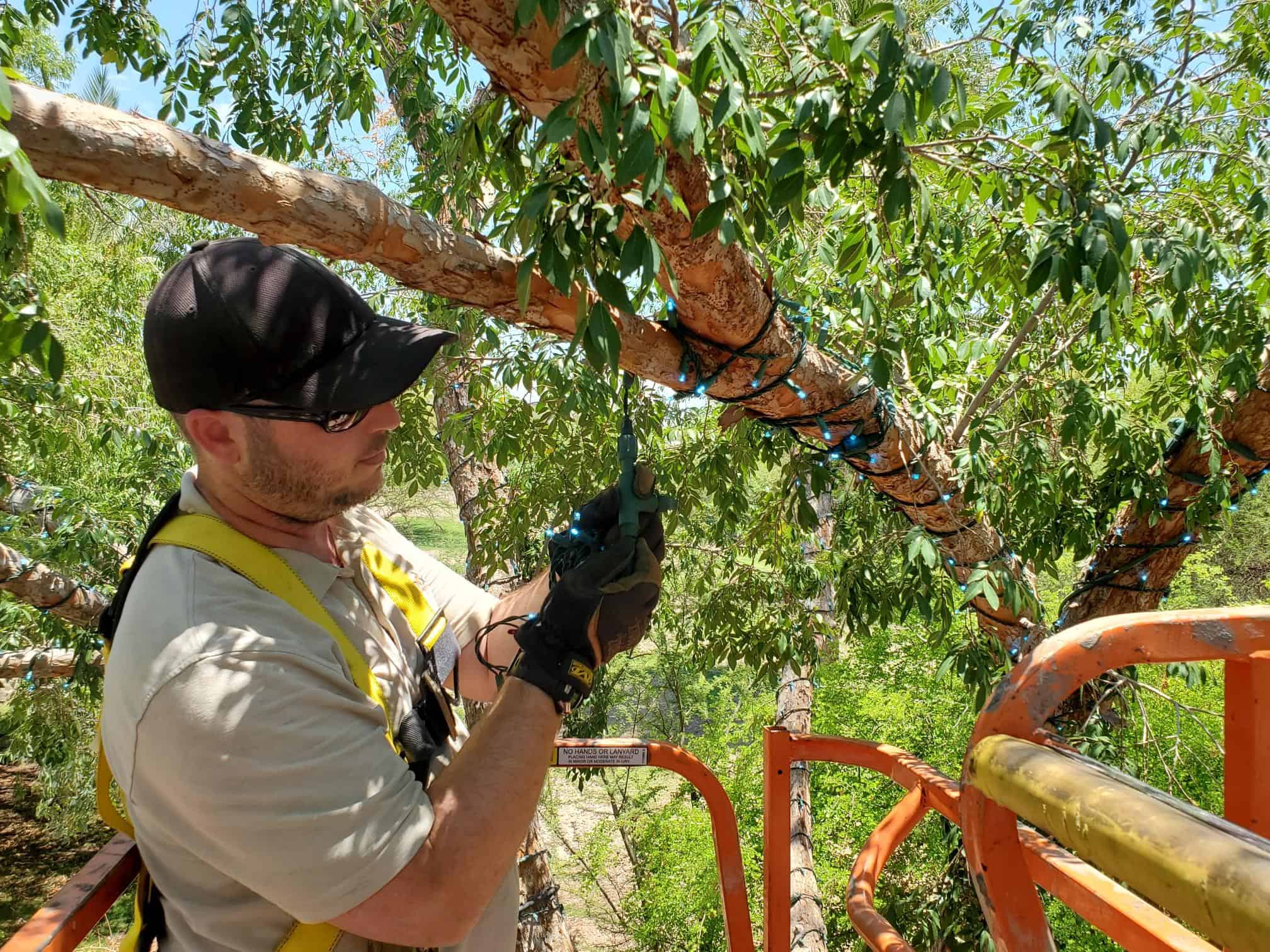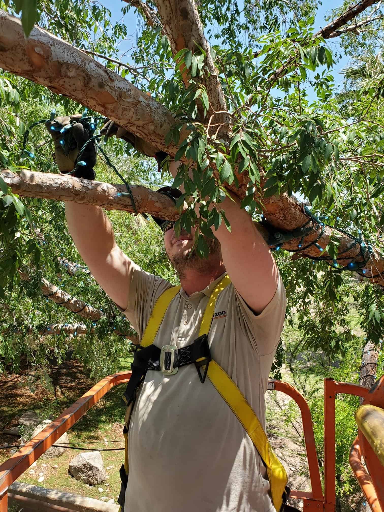 The Phoenix Zoo’s ZooLights crew has been up in the trees for the past few weeks already installing ZooLights!