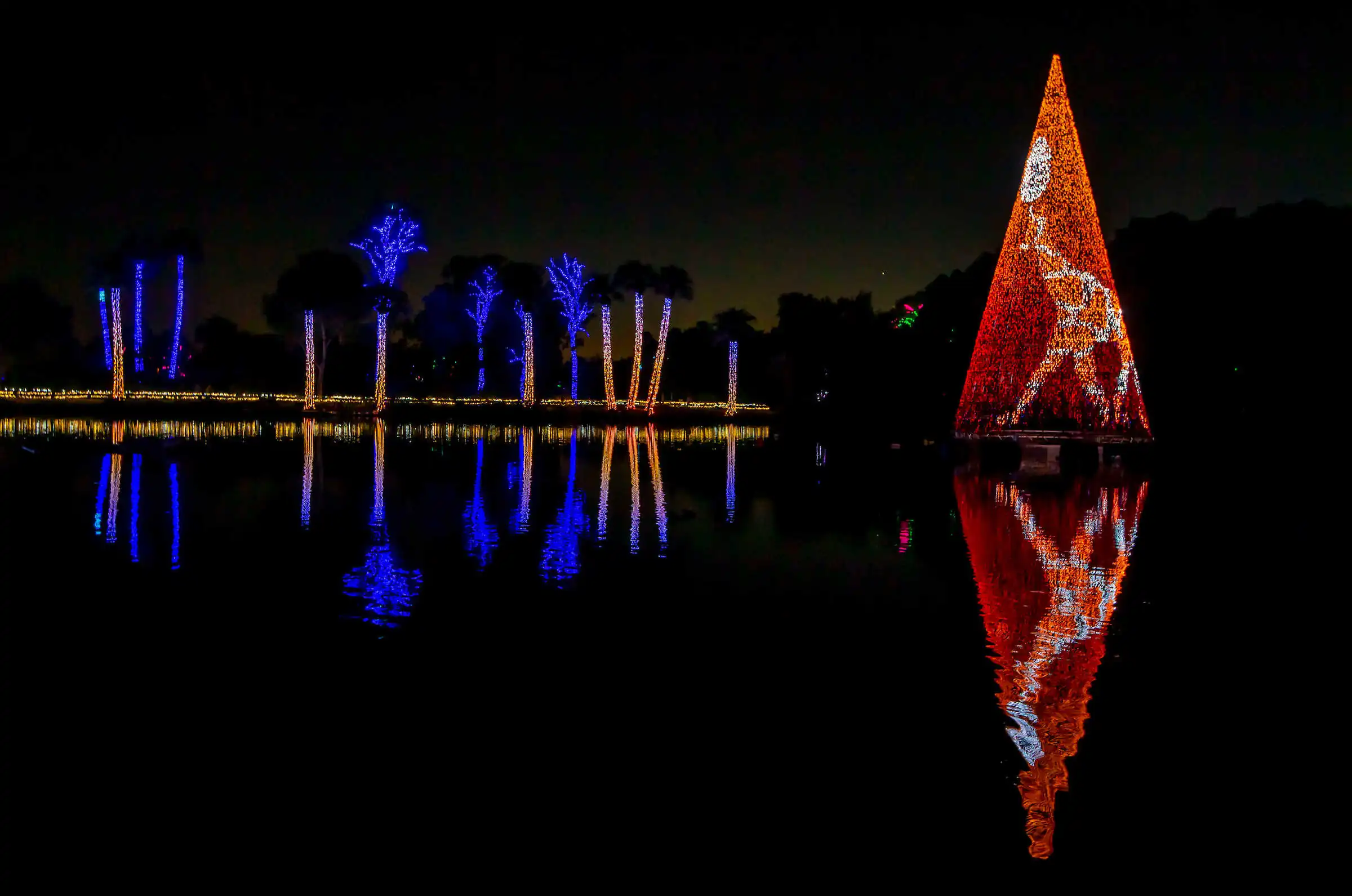 The Lake Lights Show is a stunning, immersive experience featuring a 50 ft. LED tree with music and synchronized imagery!