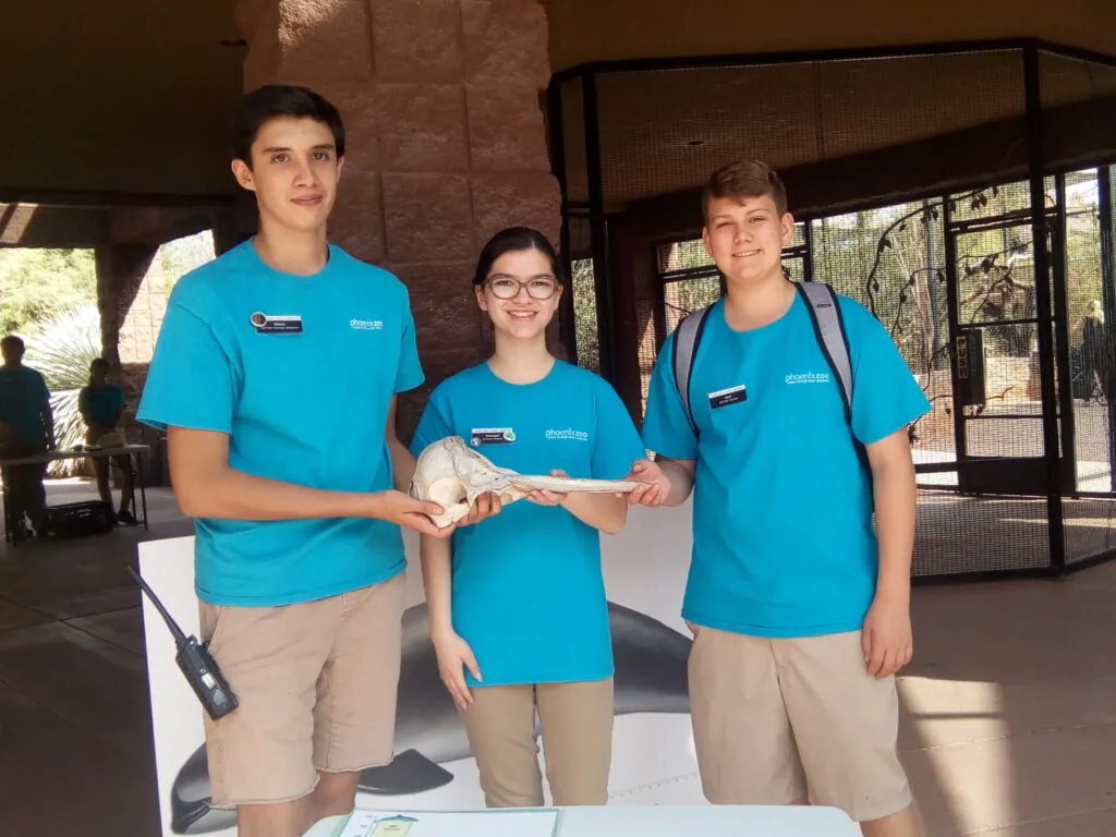 The ZooTeens program offers teens the ability to volunteer at the Phoenix Zoo on the weekends. ZooTeens volunteer shifts are focused on engaging and educating guests in a variety of fun and interactive ways. ZooTeens are required to complete a specific number of volunteer hours each year to remain in the program. If you like sharing your knowledge and enthusiasm for the natural world with others while developing important professional and life skills, this is the program for you!